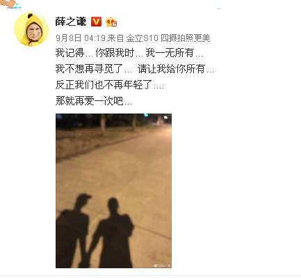 9月8日4點19分,薛之謙發了一條微博: